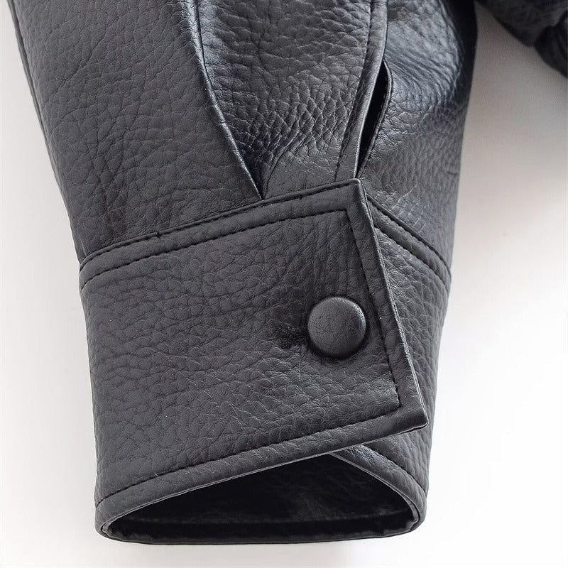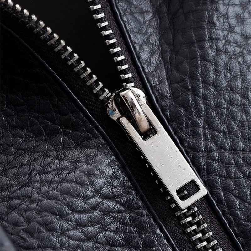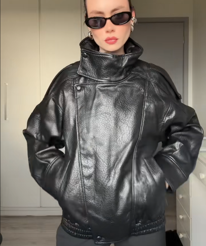 This jacket redefines what a fall essential should be — bold, timeless, and built to last. Made from premium textured leather, it blends modern edge with everyday versatility. The high collar and asymmetric front give it a distinctive silhouette, while the soft inner lining ensures all-day comfort.