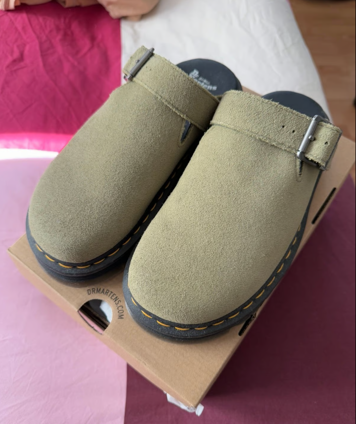 These suede clogs bring together the best of effortless style and everyday practicality. Designed with a chunky sole and signature yellow stitching, they deliver that bold, street-ready look while keeping your feet supported all day long. The adjustable buckle strap ensures a perfect fit, and the soft suede upper adds a cozy, autumn-ready touch. Whether you're heading out for a coffee run or dressing up your fall layers, these clogs are built to make every step stylish and comfortable.